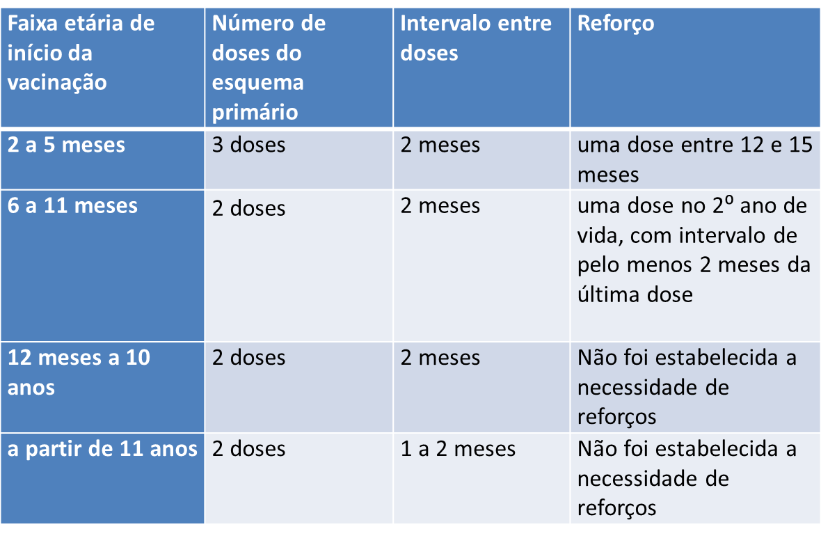Tem que ser duas doses no primeiro ano de vida e um reforço após um ano, nesse caso.